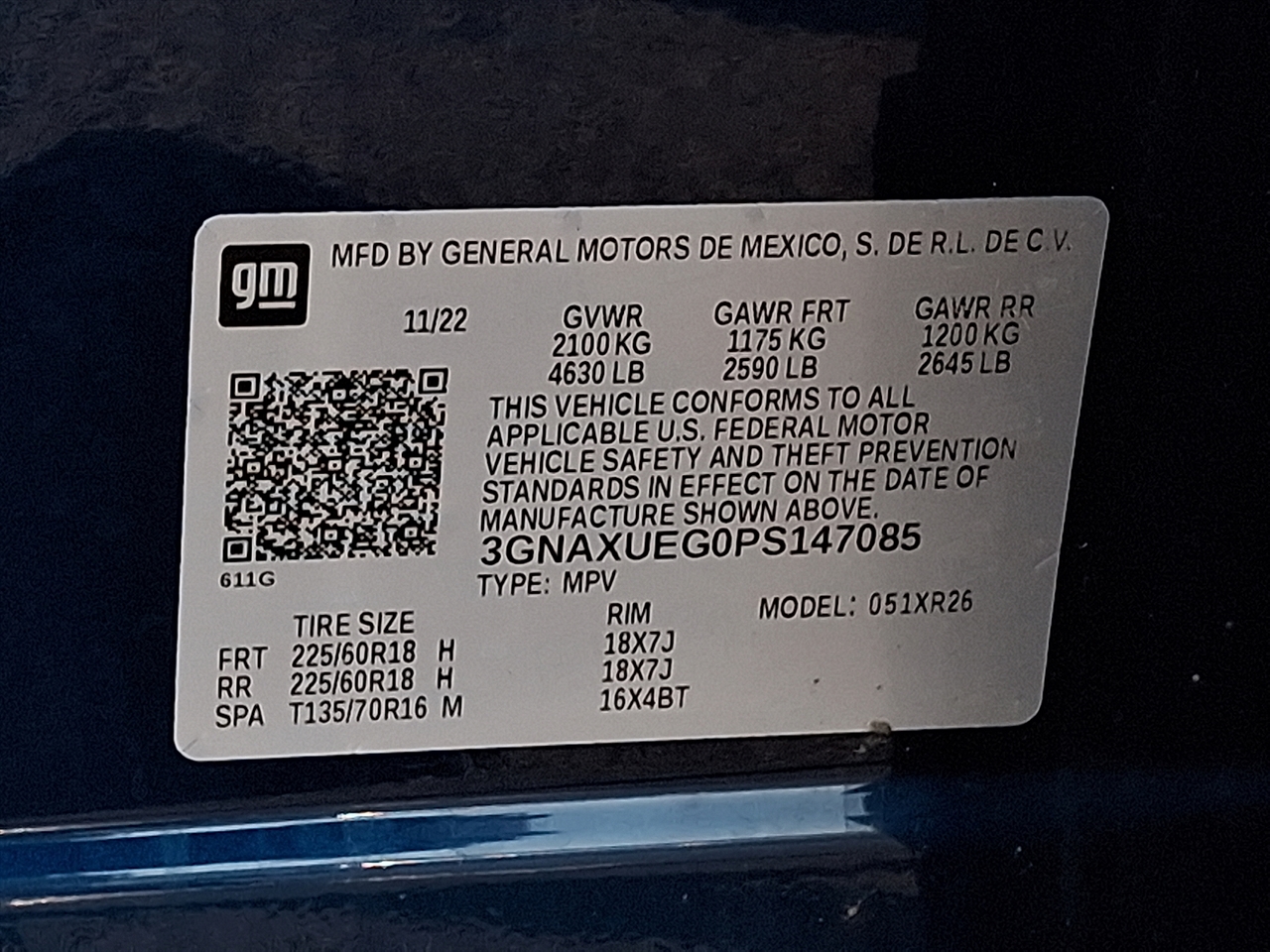 - 3GNAXUEG0PS147085