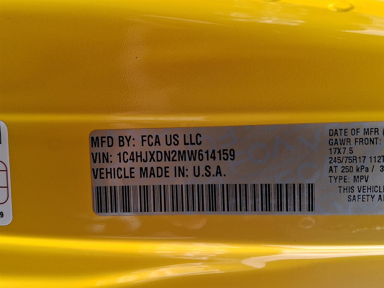 • 1C4HJXDN2MW614159